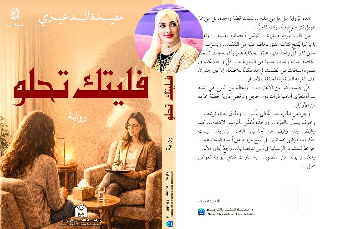 صدر حديثًا العمل الروائي الأول للكاتبة التونسية مفيدة الدعيزي بعنوان «فليتك تحلو» عن دار نهاد للنشر والتوزيع.
